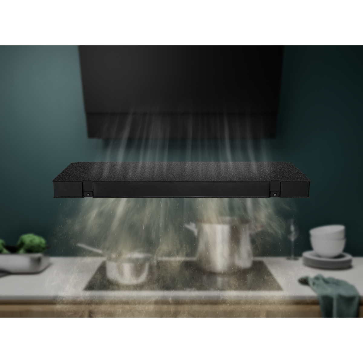 O filtro de carvão ativo OdourClean reduz eficazmente os odores indesejados do ambiente da sua cozinha.