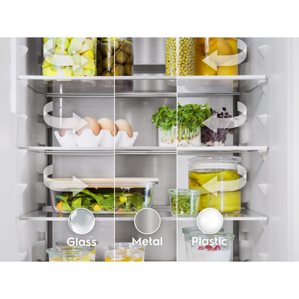 O revestimento interno rHIPS é feito com até 70% de plástico reciclado, representando 13% do plástico total do frigorífico.