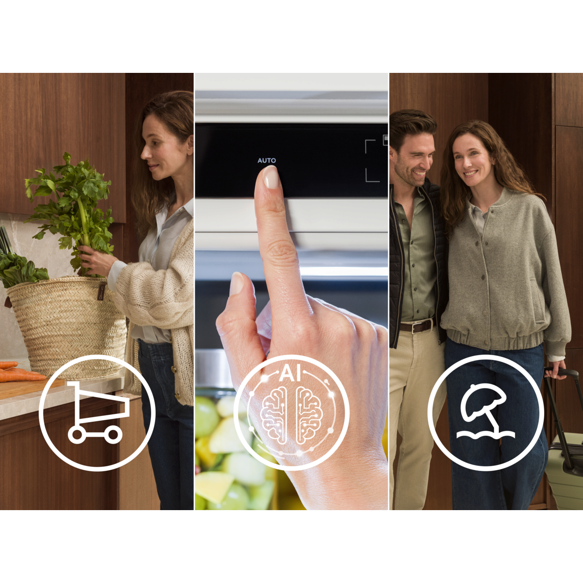 *Testado nos modelos 1780 CB Multichill e 1780 CB Twintech NoFrost, comparando o consumo de energia a 25 °C com o modo Auto Vacation ativado através do AI CoolAssist, versus as definições de fábrica com o AI CoolAssist desativado. A poupança real de energia pode variar.
