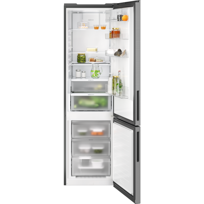 Combinado Série 700 GreenZone+ de 202 cm, TwinTech® Total No Frost com MultiFlow, display digital interior, gaveta GreenZone+, gaveta ExtraChill, compressor Inverter, puxador integrado, porta plana