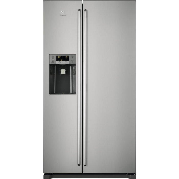 Frigorífico Americano de 1,78 m, congelador No Frost livre de gelo, com funções de refrigeração e congelação rápidas, Dispensador de água e gelo, Display LCD na Porta, iluminação interior LED, Look Inox